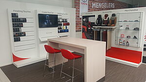 Een hoek van onze showroom is ingericht om alle mogelijke samenstellingen te voelen en beleven. Lakkleuren, leercombinaties, stoffen en accessoires kunnen hier bekeken en toegepast worden op de door u gewenste Toyota.