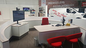 De belangrijkste verkooplocatie bevindt zich nu midden in de showroom. Hier heeft onze collega zicht over alle hoeken en zal hij sneller contact kunnen leggen met bezoekers. Al onze verkooplocaties zijn voorzien van grote schermen waarop direct met klanten een auto samengesteld kan worden, acties bekeken kunnen worden of een occasion erbij gepakt kan worden.