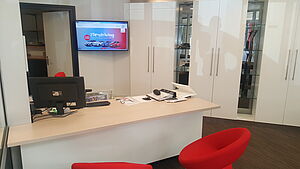 De kantoren van verkoopadviseurs zijn voorzien van nieuw meubilair, maar ook van de eerder genoemde nieuwe schermen.